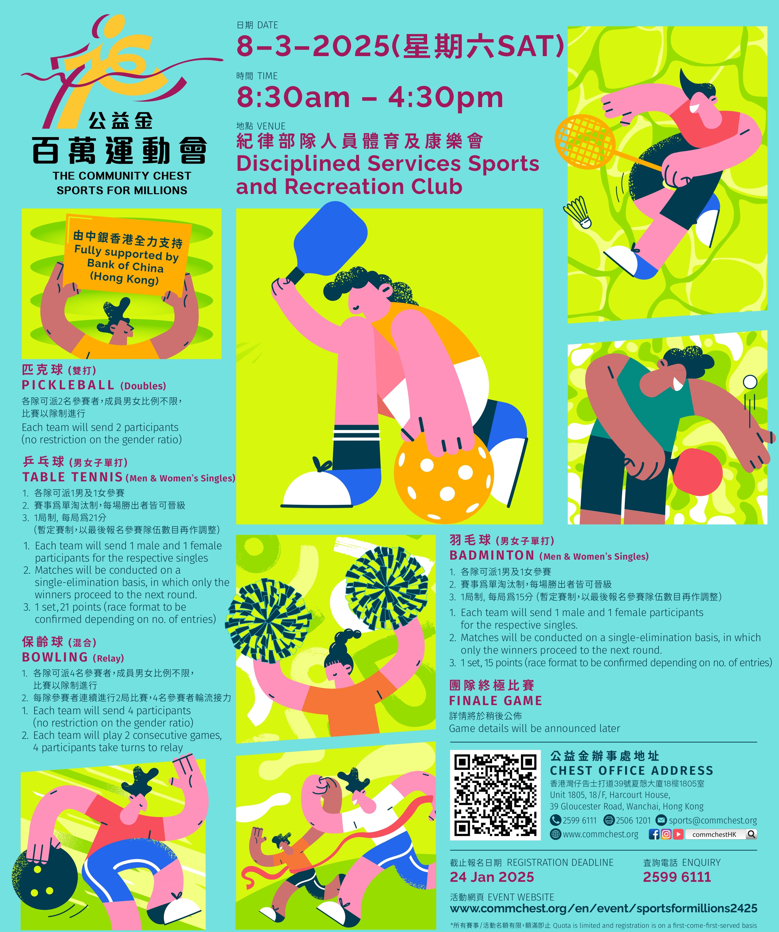 了解活動詳情及報名,可瀏覽公益金百萬運動會網頁:https://www.commchest.org/tc/event/sportsformillions2425
